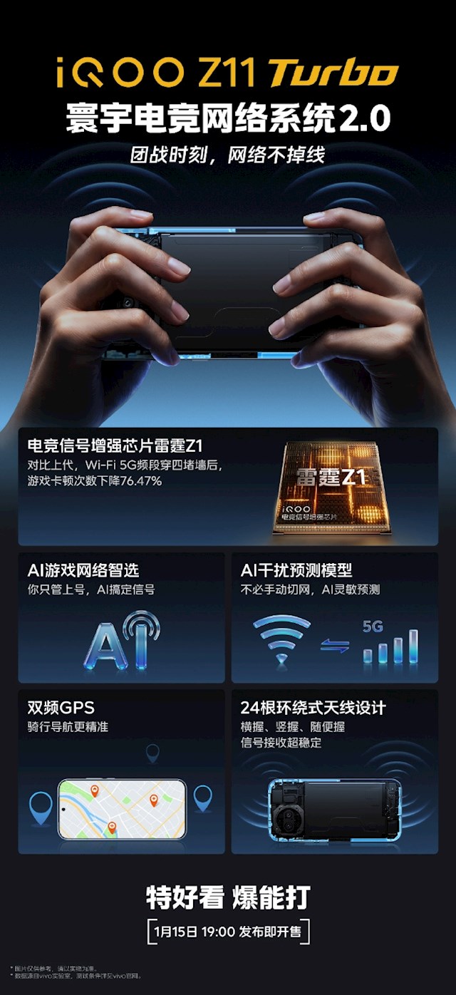 快科技1月11日消息,iQOO Z11 Turbo新机将于1月15日发布并开售,该机型搭载电竞信号增强芯片雷霆Z1,对比上代,Wi-Fi 5G频段穿四堵墙后,游戏卡顿次数下降76.47%。
