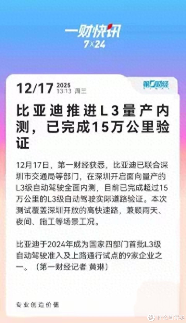 三年前别人还在试水新能源汽车,比亚迪已经拿了国内第一张L3测试牌照!2024年,智能驾驶刚刚开始试行L2,比亚迪已经进入了L3智能辅助驾驶国家首批试点名单!